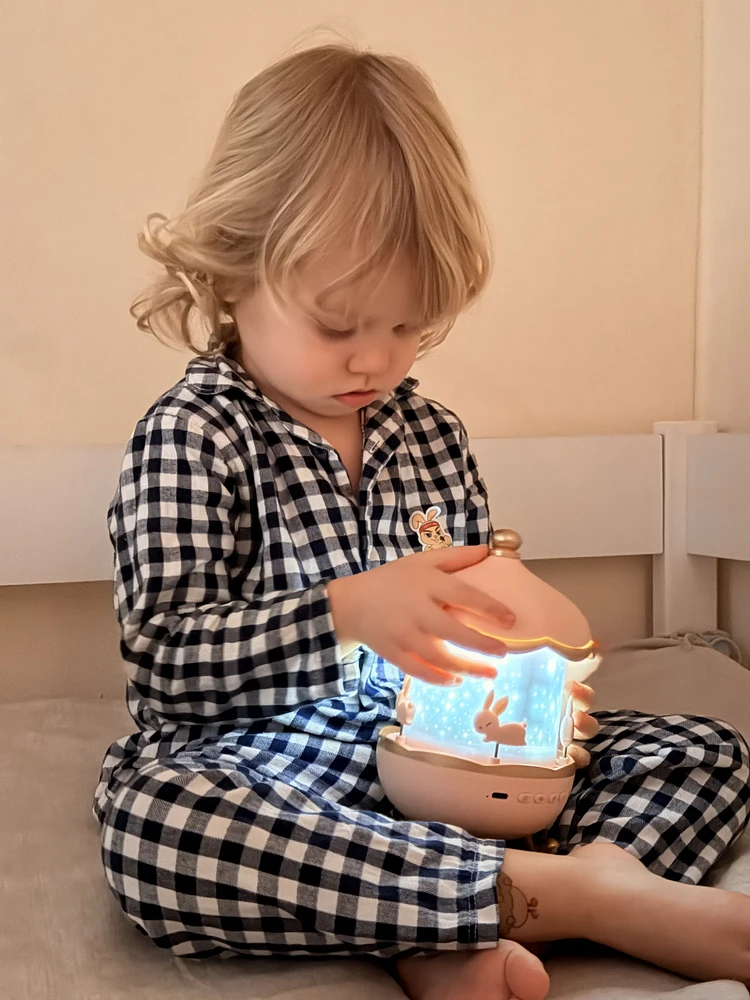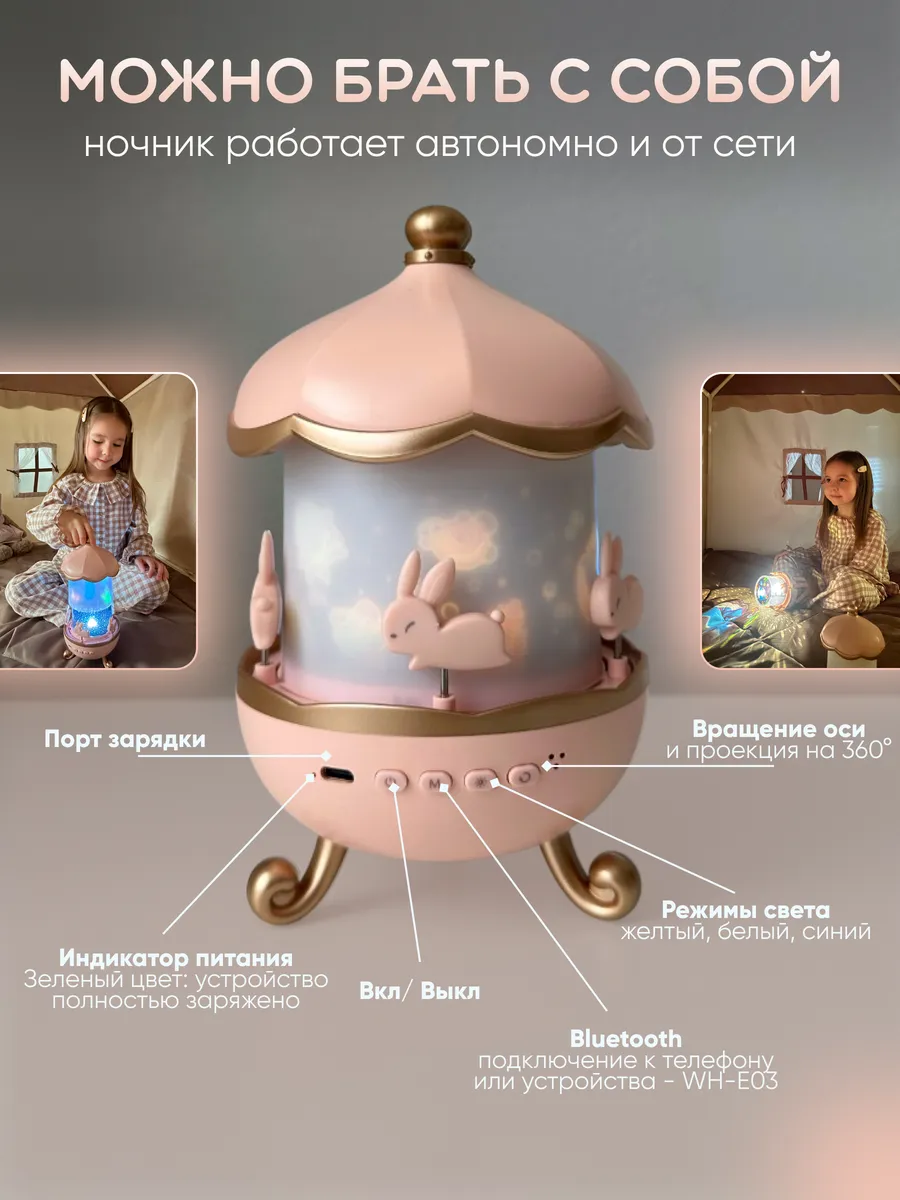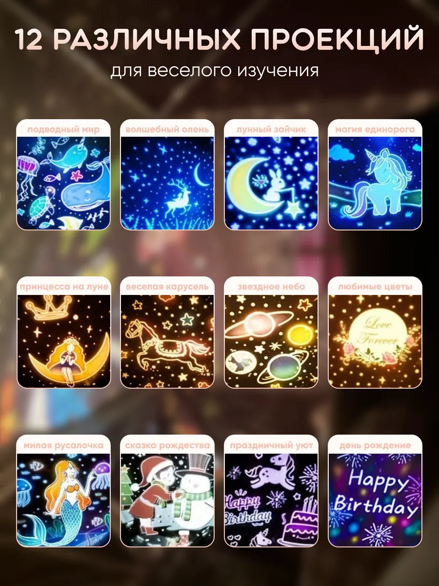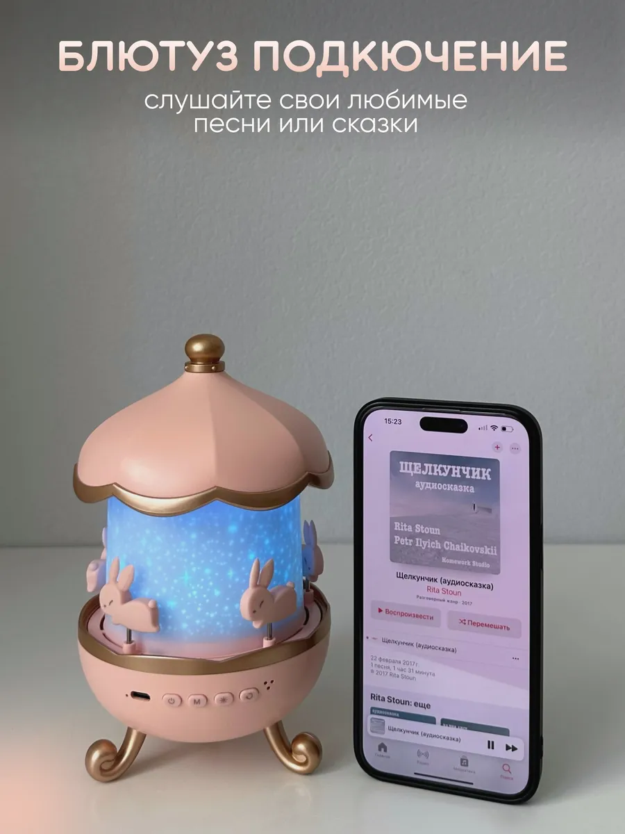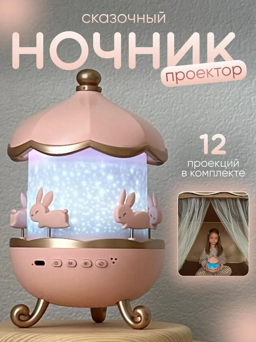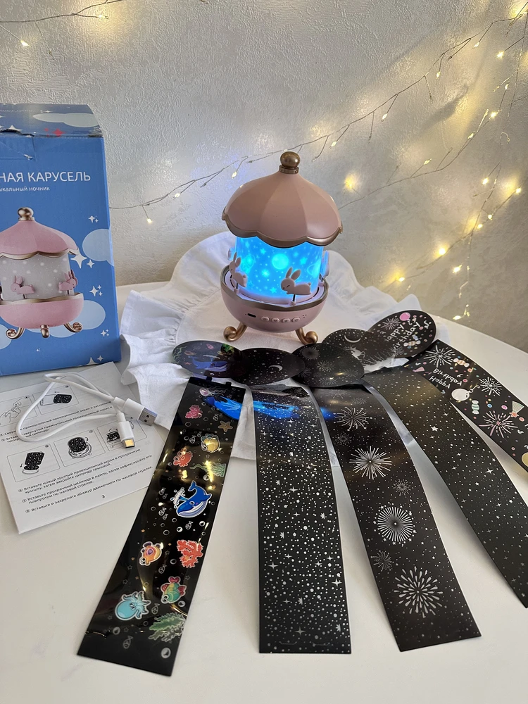 Подарите волшебство с ночником-проектором «Карусель»! Он создаст в детской комнате удивительную атмосферу, проецируя на потолок и стены красочные звезды, единорогов или морские пейзажи. Этот прибор станет идеальным подарком для малыша любого возраста и настоящим помощником для родителей, мягко избавляя ребенка от страха темноты и помогая настроиться на сон.